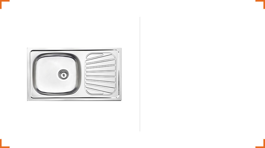 Fregadero en acero AISI 430 - 0,6 mm. Acabado pre-pulido.